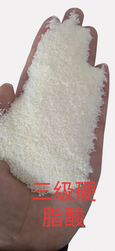三、物化性質:本品系由C16和C18為主的飽和脂肪酸,常溫下為白色片狀固體,不溶于水,微溶于苯和二硫化碳,易溶于熱乙醇,無毒無味,具有有機羧酸的一般化學通性。